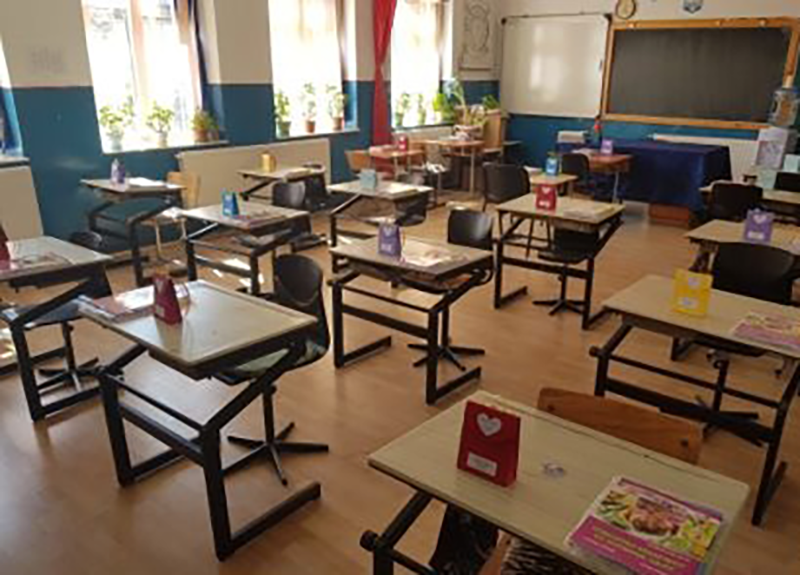 Sălile de clasă sunt dotate cu mobilier ergonomic (module), internet, calculatore, videoproiectoare, calculatoare precum şi table smart.
